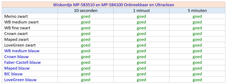 Zeer goed schoon te houden, met elke kleur die wordt gebruikt op het Wisbordje (ook rood, groen en andere kleuren.)